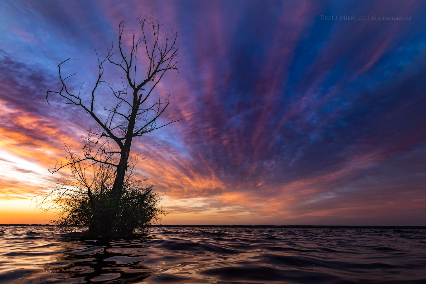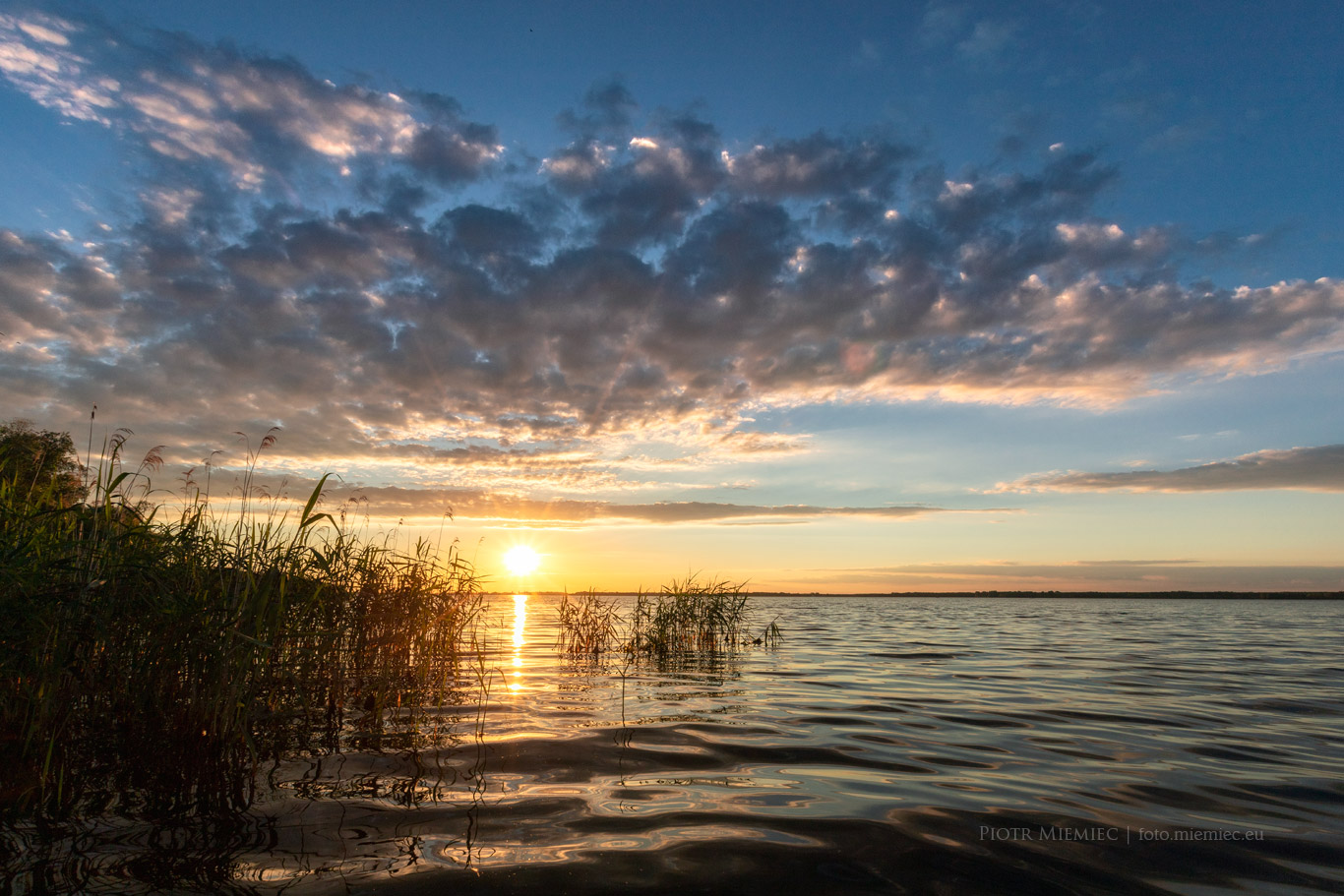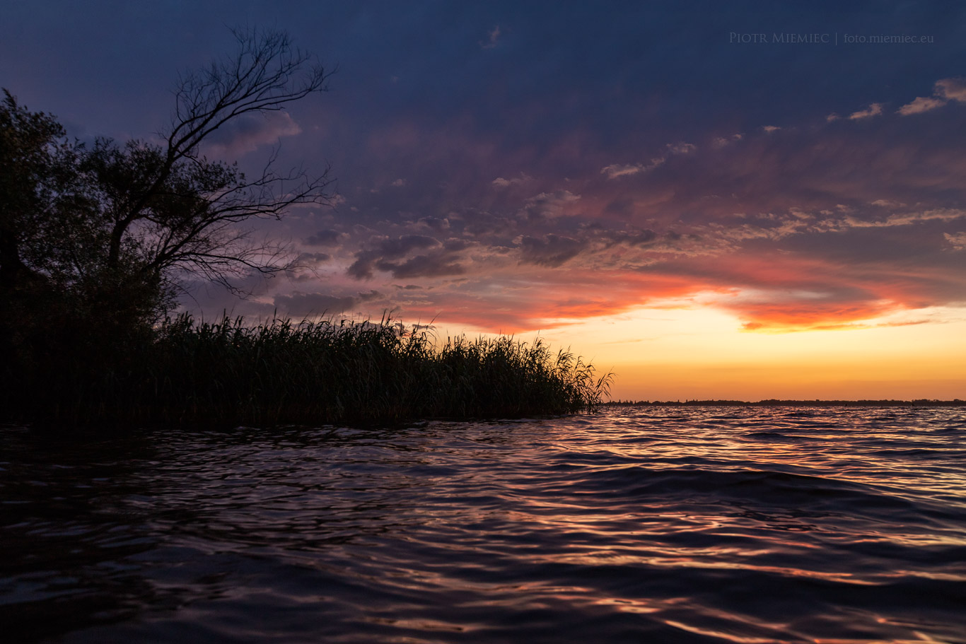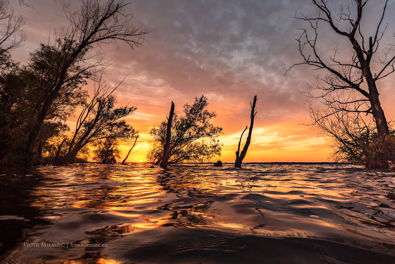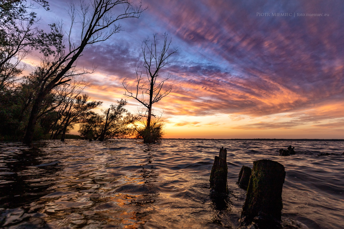 Jezioro Turawskie to miejsce gdzie nie da się nudzić. Nawet nie robiąc dosłownie nic, fajnie spędza się czas. Trzeciego dnia pobytu, pogoda nie była zbyt fotogeniczna a nawet czasami padał deszcz. Przeglądając mapy pogodowe czekałem na wieczór, gdyż miało pojawić się słońce. Czekałem i się doczekałem. Pogoda zrobiła się piękna, a chmury na niebie zachwyciły by niejednego malarza. Brodząc prawie po szyję w wodzie, trzymając mocno w dłoni sprzęt fotograficzny miałem nadzieję, że się nie potknę o jakiś konar leżący pod wodą.