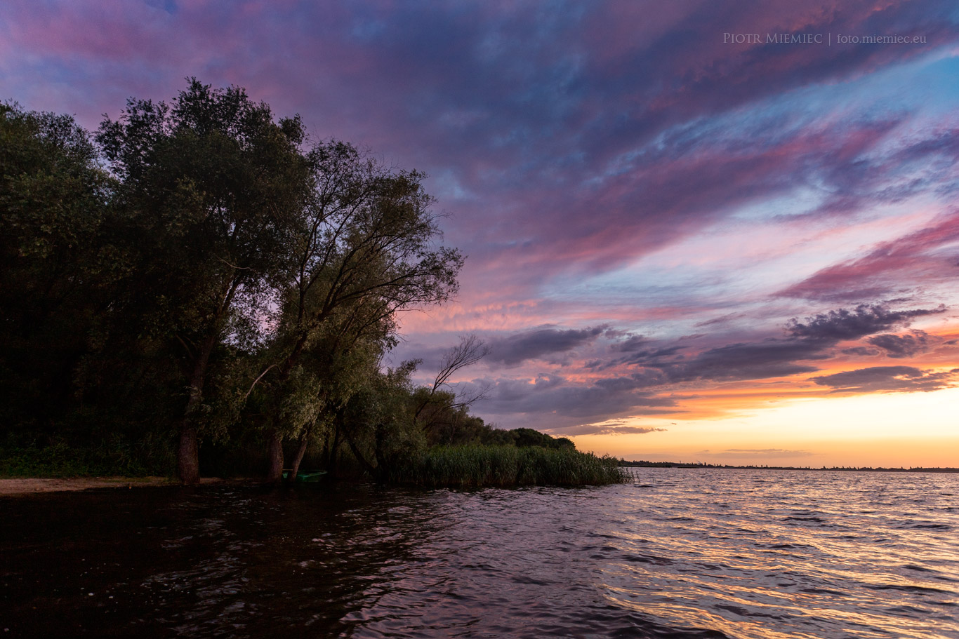 Pierwszego dnia, dzięki uprzejmości właściciela istniejącej nad dużym jeziorem wypożyczalni sprzętu pływającego, miałem okazję udać się w miejsce niedostępne od strony lądu. Miałem wtedy w planie uwiecznić na zdjęciach zachód słońca. Cel osiągnięty. Kilka zdjęć przedstawiam poniżej.