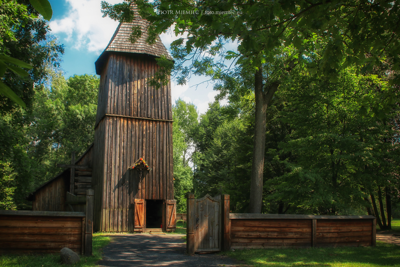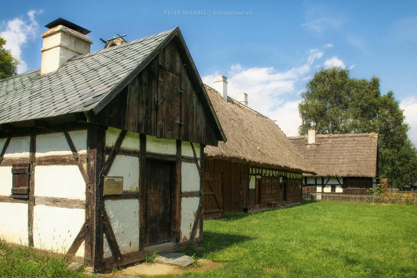 Do czasu udostępnienia terenu muzeum zwiedzającym w 1970 roku, wzniesiono tu szereg zabytkowych obiektów architektury wiejskiej z całego województwa opolskiego. Są to m.in.: spichlerz ze Sławięcic, spichlerz z Ligoty Książęcej, chałupa z Kamieńca, chałupa z Karmonek Nowych, karczma z Przewozu oraz chałupa z Radłowa. Znajduje się tu także przeniesiony z Gręboszowa kościół, zbudowany w 1613 roku z modrzewiowych bali.