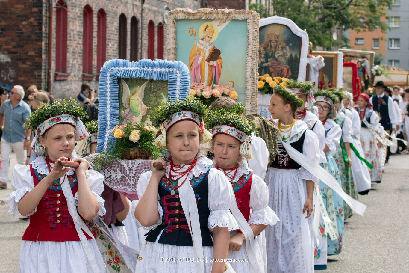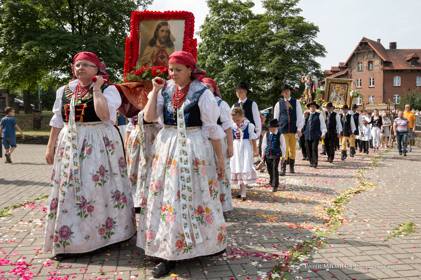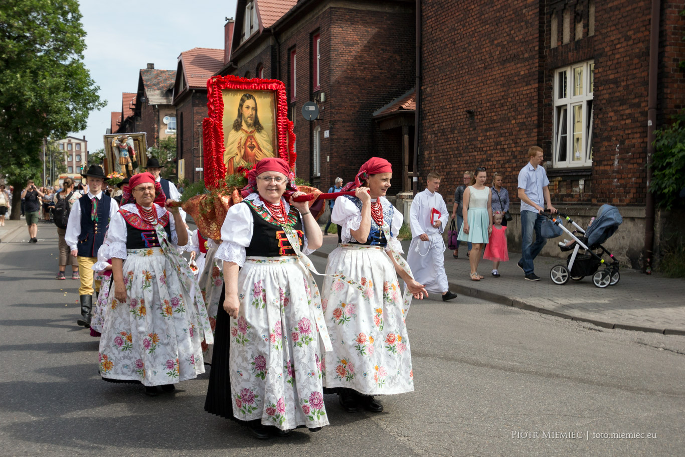 Część uczestników procesji ubrana była w tradycyjne, śląskie stroje, niosąc obrazy, ikony oraz sztandary. Ten sposób obchodzenia Uroczystości Najświętszego Ciała i Krwi Chrystusa, praktykuje się już od wielu lat.