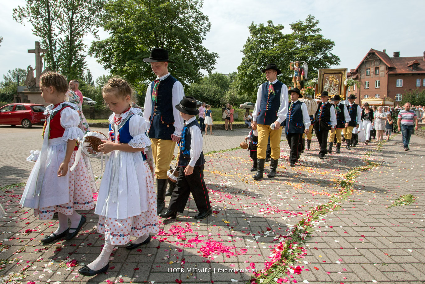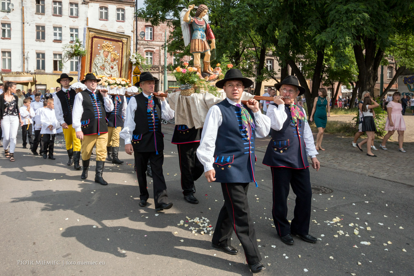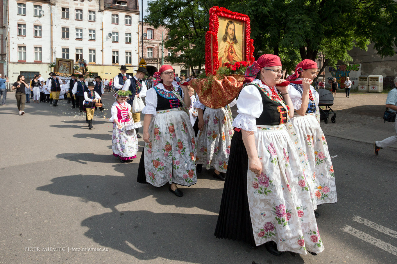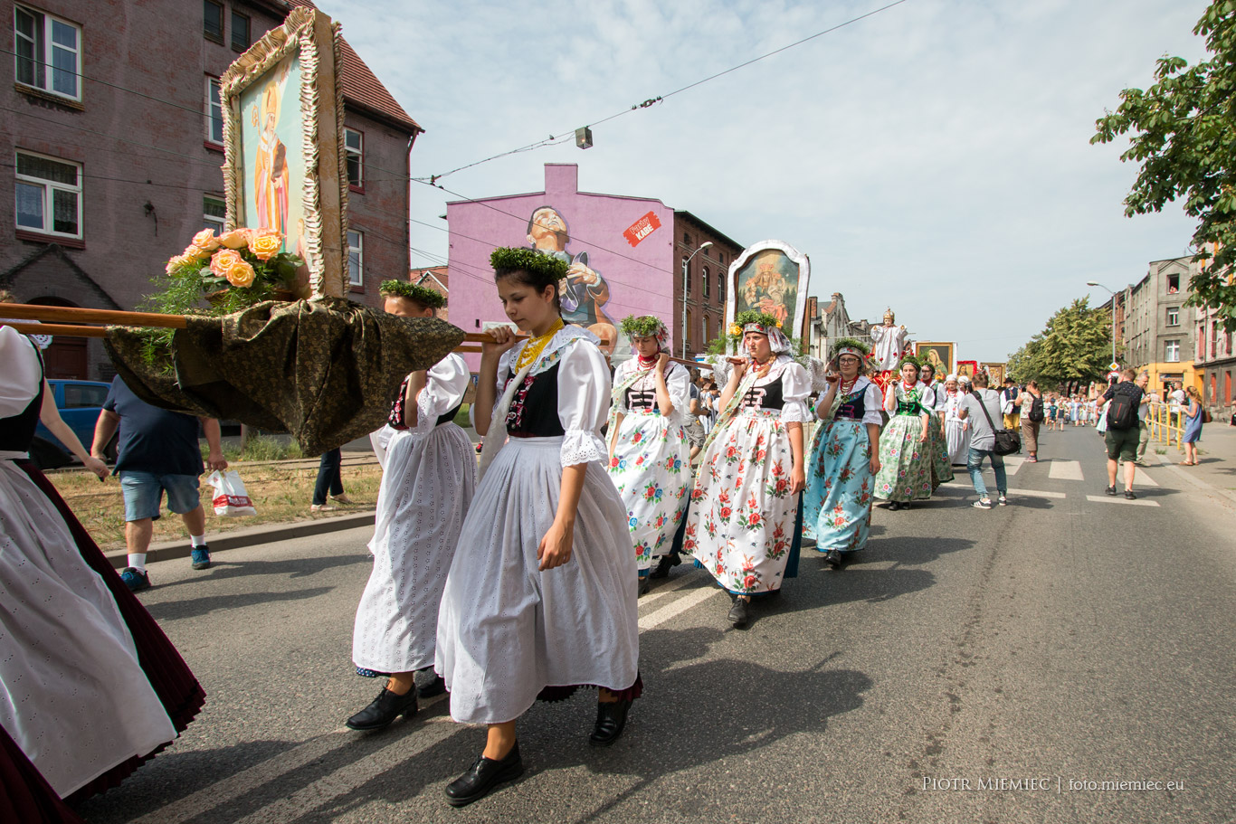 Część uczestników procesji ubrana była w tradycyjne, śląskie stroje, niosąc obrazy, ikony oraz sztandary. Ten sposób obchodzenia Uroczystości Najświętszego Ciała i Krwi Chrystusa, praktykuje się już od wielu lat.