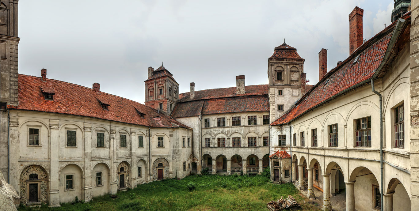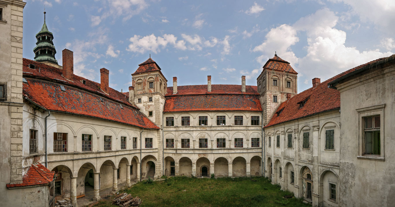 Zamek w Niemodlinie budowany był etapami 1573-1577, 1589-1592 i w 1610 roku. Jego fundatorami była rodzina Pucklerów, później Promnitzów. Był typowym renesansowym przykładem czteroskrzydłowej rezydencji zbudowanej wokół prostokątnego dziedzińca otoczonego arkadami.